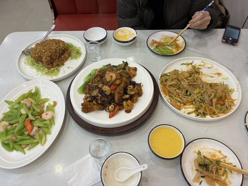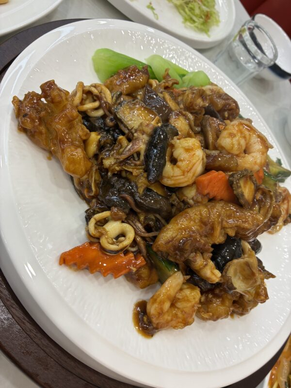 After mission completed, the doctor and I, headed to a restaurant with a fish tank that serves fresh seafood. The doctor and I are big eaters, so we shared four dishes: fried rice, stir-fried celery and shrimp, agar salad with mustard miso, and stir-fried seafood with XO sauce. Everything was delicious and easy to eat, even for Japanese people.